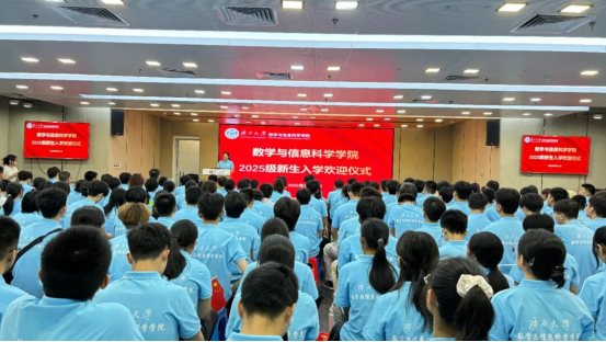 2025年9月15日上午,我院在大学生活动中心310报告厅举行2025级新生入学欢迎仪式。数学与信息科学学院党委书记吴华丽、院长郭真华、学院领导班子全体成员、系主任、辅导员、新生班主任和233名2025级新生一同参加入学仪式。
