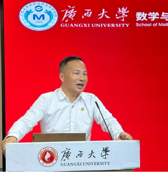 2025级新生代表苏宇欣表达了步入广西大学这座学术殿堂的喜悦与自豪,并分享了对于未来大学生活的无限憧憬与规划。她表示,将珍惜宝贵的求学时光,尽快转变角色,勤学善思,笃行不倦,在数学的海洋中尽情遨游,不辜负师长的殷切期望。